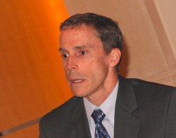 続いて米モトローラ・モビリティ・インクの、アジア太平洋地区 ホームビジネス バイス プレジデント兼ジェネラル マネージャーであるケビン・キーフ氏は、同社が今後注力していくビジネス分野についてくわしく説明するとともに、Googleによる買収についても見解を述べた。