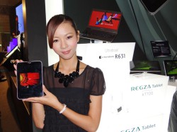 タブレットは昨日発表したAndroidタブレット新製品「AT700」「AT3S0」(関連ニュース)のタッチ&トライコーナーが設けられており、実機の動作や質感を確認できる。