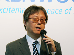 本日開催されたJVCケンウッドの製品発表会では、同社業務執行役員 ホーム&モバイル事業グループ 音響事業部長 宮本昌俊氏、同商品企画統括部 AVC部チーフ 江野澤仁嗣氏、同部商品設計第三部参事 三浦拓二氏が登壇し、同社の事業戦略や今回発表の新製品について紹介した。