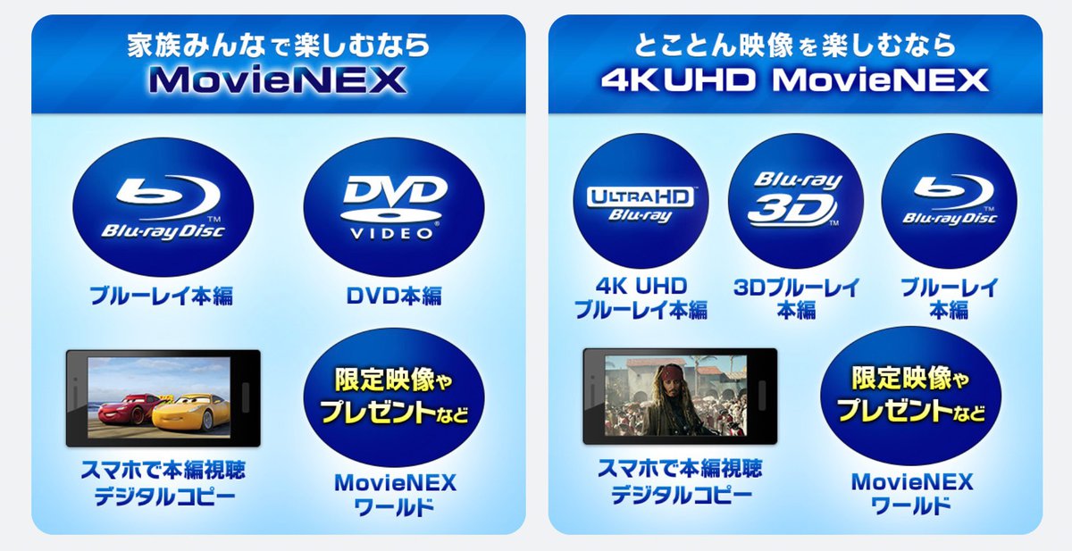 ウォルト・ディズニー・ジャパン(株)は、同社が販売するUHD-BDソフト、BDソフト、DVDソフトで展開してきた「MovieNEX」サービスを、今年9月末に終了すると発表した。終了後はデジタルコピーやダウンロードコンテンツの新規取得ができなくなる。