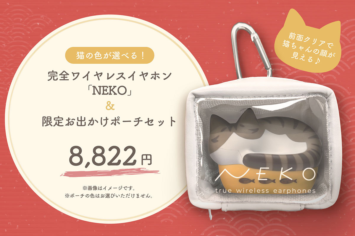 注目は、“猫イヤホン” として知られる完全ワイヤレスイヤホン「NEKO(HP-C28BT)」に、福袋限定のオリジナルポーチを同梱した特別セットだ。価格は通常と同じ8,822円(税込)で、ポーチは前面にクリア素材を採用し、カラビナも備えた持ち運びしやすい仕様となっている。カラーは選択可能で、各色20個限定。なお、「HP-C28BT」の売上の一部は、保護猫活動や動物福祉団体への寄付に充てられる。