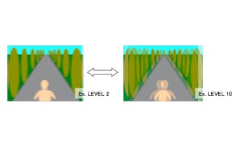 2D-3D変換機能は、ビクターが開発した独自の変換アルゴリズムを採用し、視差量を変更する「Parallax」と、立体感の強さをコントロールする「Intensity」、「Sub-intensity」の調整機構を積む。後者は、映像の奥行き感を演出する画面全体の湾曲度とオブジェクト毎の凹凸感を調整するもので、被写体の種類や各シーンの特徴に合わせて60ステップで調整が可能だ。