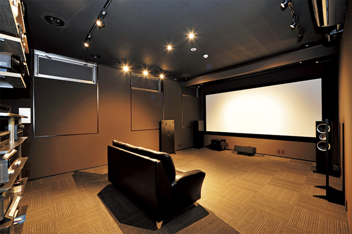 HOMETHEATER DATA ●住宅形態:戸建/リフォーム ●ホームシアターの広さ:10畳 ●画面サイズ:120型+77型 ●サラウンド:7.4.6ch ●インストール内容:機器設置、システムプランニングほか