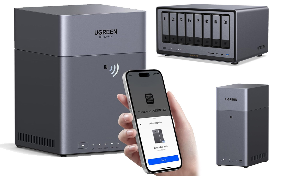 Amazon UGREEN公式ストアなお、「DH4300 Plus」「DH2300」といった入門モデルのDHシリーズと、上記「DXP8800 Plus」を始めとするDXPシリーズとの違いは、接続できるHDDの種類やプロセッサーの性能、搭載している端子の数など。