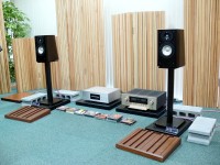 キャビネット形状は定在波を回避するため、背面をスラントさせた「リア・テーバード」形状を採用。側板にはMDFをチェリー突き板でサンドイッチした板材を用い、チェリー無垢材の響棒による側面補強を施すことにより、キャビネットの響きをコントロール。“ひとつひとつの楽器が見えてくるような、心地よいサウンドを実現している”という。