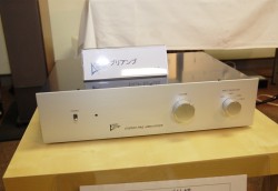 同社の新製品パワーアンプ「PCPW-100」(283,500円・税込)、プリアンプ「DCP-EF105」(34接点アッテネータ&イコライザアンプ付/274,000円・税込)をメインにデモを展開している。