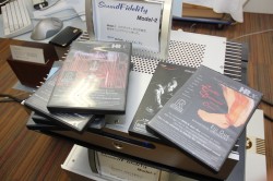 AIRBOWの新製品「DV60/Ultimate」「X05/Ultimate」をメインにSACD/DVD/CDなどディスクメディアによる音の違いをデモで紹介している。店舗で取り扱うHiFiスピーカーを一堂に取り揃えたデモは人気が高い。