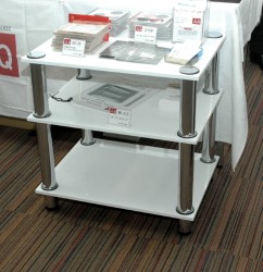 オーディオアクセサリーシリーズ「fo.Q」を展開する木曽興業は、チューニングシートからオーディオブロック、レコードスタピライザー、オーディオラック、スピーカー用ボードなど幅広いアクセサリー製品を展示している。