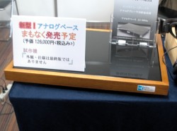Infra Acousticsブランドを取り扱うネットスタッフは、アナログベースの試作機を出展している。11月の発売を予定し、価格は126,000円(税込)。従来モデル「AN-0604a」と同様にフローティング構造を採用しているが、従来モデルでは20kg以上の重量を備えるプレーヤーを推奨していたが、新モデルでは15kg以上であれば音質効果が得られるようにした。