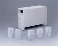 本システムは、ベースモジュールと5つのサテライトスピーカーからなっており、合計6チャンネル分の低音再生をベースモジュール内蔵アンプが受け持つことで、アンプの負荷の軽減、歪み成分の軽減を実現している。