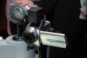 30GBのHDDを内蔵したDVカメラ「DCR-SR100」やDVD-R/-RW/+RWでの記録に対応したDVDビデオカメラ「DCR-DVD505」「DCR-DVD405」も参考出品。さらに“walkman”の愛称を初めて冠したSony Ericssonの携帯電話全5機種や、BD/DVD/CDを200枚収納できるVAIOのディスクチェンジャー、ロケーションフリーの据え置き型クライアント「LocationFree Box」も参考展示した。