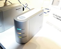 パナソニックは、PLCをベースに、映像や音声などの情報データを4MHz〜28MHzの高周波信号に乗せて伝送する「HD-PLC」を提唱。最大190Mbpsのスピードでデータの伝送が可能なほか、ボタンを押すだけの簡単設定、AES128bitの暗号技術などの特徴がある。ブースでは、アメリカで既に発売しているHD-PLCアダプターを用い、映像を伝送するデモも行っていた。
