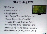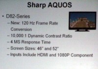 D82シリーズは、LC-52D82U、LC-46D82の2機種。亀山第2工場製の第8世代パネルを採用し、10,000対1のダイナミックコントラストと4msの応答速度を実現。バックライトには4波長のものを採用する。HDMI端子はD92シリーズ同様、3系統を装備する。