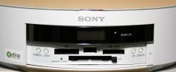 このディスプレイ部の下は押すと右に開き、フラッシュメモリのスロットが顔を出す。フラッシュメモリスロットは、メモリースティック、SDメモリ、コンパクトフラッシュなどに対応している。また、USBコネクタもある。