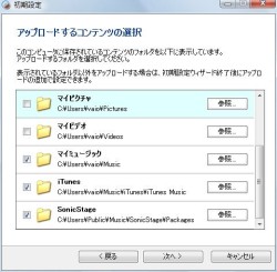 このときのフォルダとしては、マイドキュメントのメディア関連のフォルダとSonicStage、iTunesなどのフォルダが候補として表示され、チェックを入れることで選択できる。当然、必要に応じて、それ以外のフォルダも選択可能なので、仕事用のドキュメントフォルダを指定することもできる。