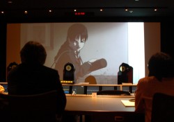 どのようなジャッジが下されるのかドキドキしながら見守っていると、しばらく悩んでいた百瀬氏が『テレシネ版』『デジタル版』で違う音声を入れよう」と提案。「BLOOD THE LAST VAMPIRE」で演出を担当していた高木真司氏をはじめとするスタッフも、百瀬氏の隣で作業に立ち会っていたBD版の製作を担当する(株)アニプレックス 煖エ 優氏も賛成し、満場一致でその案は採用されることになった。百瀬氏の妥協を一切許さない音へのこだわりを垣間見た一幕だった。