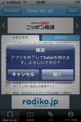 番組表機能によって、当日と翌日の放送内容を調べることも可能。楽曲情報のトピックスなども表示できるほか、気に入った楽曲をメモすることもできる。さらにアプリからSafariに移動し、バックグラウンド再生することも可能となっている。この場合、Safariで別ページを見たり、音声の出るアプリを利用することはできない。