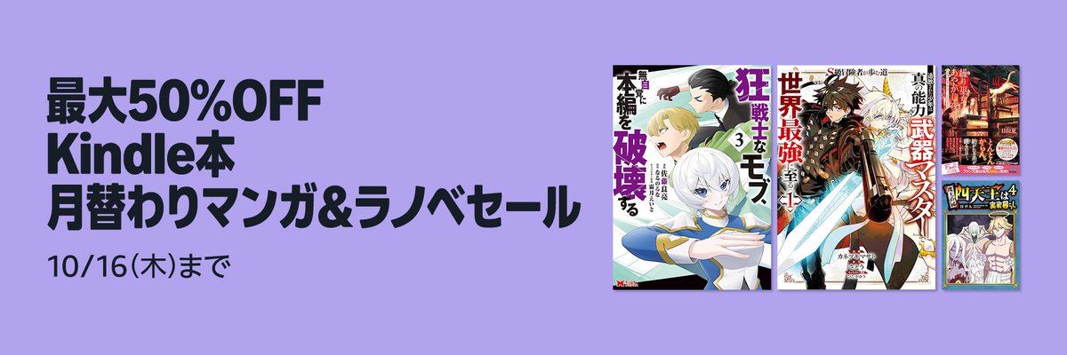 AmazonのKindleストアでは、マンガとラノベが最大50%オフになるセールを開催中。映画/アニメ化などがされた人気の作品がお得に読めるチャンスとなっている。なおセール期間は本日10月16日(木)23時59分までなので、興味のある方は今のうちにチェックしてみてほしい。