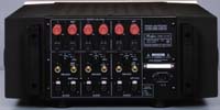 PX-600のリアパネル。本機ではフロント左右のチャンネルをLEFT/RIGHTと表示し、サラウンドチャンネルはA/B、フロントセンターをC、サブウーファーをDと表示している。ブリッジ接続の際にはLEFT+A、RIGHT+B、C+Dで3系統になる |