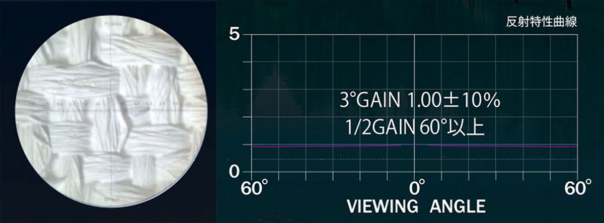 4K映像の魅力を正しく引き出すためには、モアレが発生しないことに加え、十分な明るさを確保するハイゲイン性能、白から黒までを自然に描き分ける階調表現、そして高精細映像に耐えうるスクリーン表面の微細構造が不可欠です。