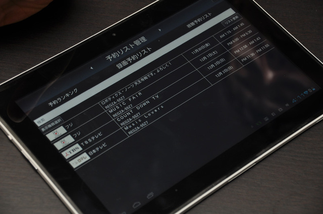 録画予約リストをタブレット上で確認することが可能