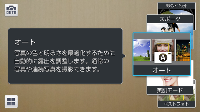サムスンのデジタルカメラのUIを踏襲したモード選択画面