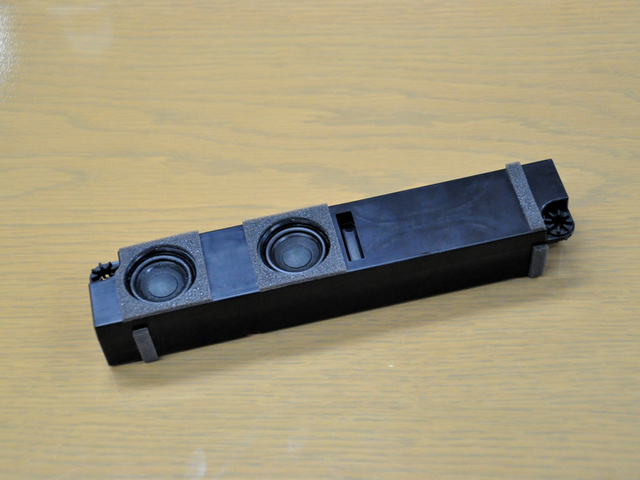 「VALUESTAR N VN970/SSB」に採用しているスピーカーユニット。左からフルレンジユニット、ウーファー、そして中央部にある縦のスリットが低音を生み出す「FR-Port」だ