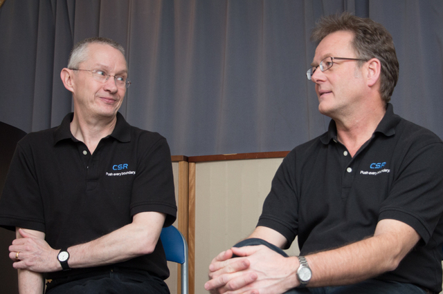 CSR本国の開発環境について語る両氏。社内の様々な部門とも綿密に連携することで、積極的かつ独創的ななデバイス開発が可能になるという