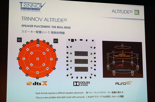 推奨スピーカー配置が異なる3種類のフォーマットいずれも違和感なく再生できる配置を提唱。CEDIAにも採用された