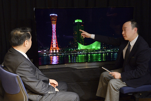 LGの有機ELテレビの映像をじっくり確認する鴻池氏と市川氏