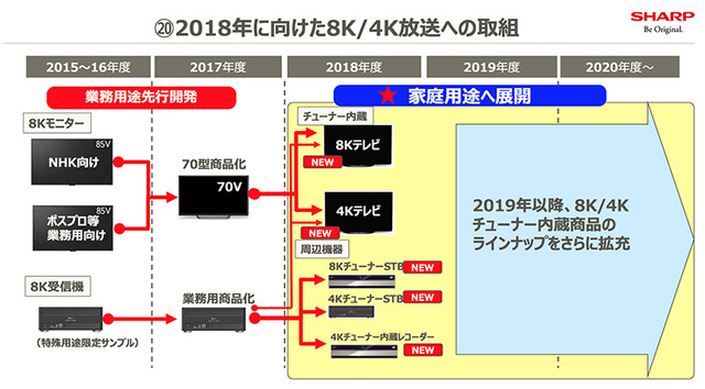 2018年の8K/4K実用放送に向けて、業界でいち早く8Kテレビを投入するとシャープは宣言している