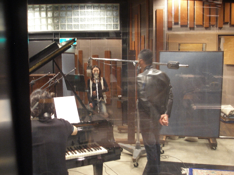 録音前のリハーサル模様。下川プロデューサーがSuaraさんにアドバイスをされているようだ