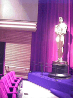 <写真左>アカデミー・ゴールデンシアターを我々の取材の為に貸し切ってくれ、『パトリオット』をデモしてくれた。金色に光るのはもちろんオスカー像
