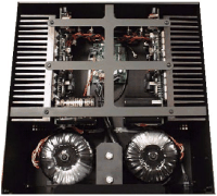 本機は1オームなど極めて低い負荷インピーダンスのスピーカーも連続的に安定したドライブが可能な、パワーアンプです。電源には独自に開発されたスロースタート・システムを用い、2基の1.2kVA電源トランスを採用。