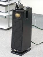 「重心一点支持構造」は、筐体の揺れを少なくするための技術。筐体の下方に低音、上方に中・高音が配置されている通常のスピーカーの場合、筐体は底面を支点に揺れを生じる。揺れが起きると、変調による音の濁りが発生する。「重心一点支持構造」は、筐体内部を貫く支柱によって重心を支持するため、この揺れがほとんどなく、スピーカーの上部、下部でそれぞれ測定したデータでは、揺れを1/10ほどに低減することに成功している。