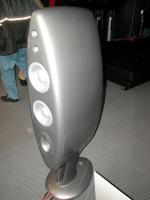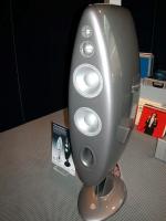 そのユニークなフォルムと、3次元的広がりの豊かな音に惹かれたのか、アナログプレーヤーのクリアオーディオのブースや、emmラボとエレクトロコンパニエのブースで採用していた。
