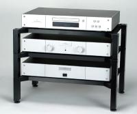 ラックの弊害のひとつとして挙げられる棚板の共振を回避すべく、棚板を持たないスケルトン構造としている。無垢の切削アルミニウム材を機器設置面に使用し、同じく無垢のスティール材を支柱部に使用。異種金属を組み合わせて使用する、ゴールドムンドメカニカルダイオードコンセプトにより、振動を床面にすばやく排除する。また、床面から振動が逆流することも防止する。