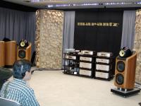 試聴では、B&Wの新800シリーズのフラグシップ「800D」を聴くことができる。同社の小菅氏は、「少しでもいい音で聴いて頂きたいので、部屋の四方八方に、自作の音響調整板を張り巡らせた。コストも結構かかっている。今回の搬入には10トントラックが必要で、年々機材が大規模になっている」と説明。苦労の甲斐あって、低音のコントロールがよく利いた、非常に迫力のある音を奏でていた。