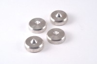 今回ご紹介する純マグネシウムインシュレーターは、2ピースからなる。「M1」は受け皿、「M2」はスパイクで、CDプレーヤー、アンプ、小型スピーカーの下はもちろん、トールボーイ型スピーカーのピンの受けにも使えるように、スパイクと受け皿は別売される。さらに、3個組と4個組が用意され、用途に応じて選べるのは嬉しい配慮だ。