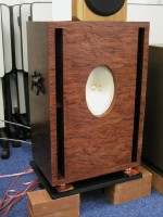 本当に何でもないルックスのユニットだが、声などを聴いていてうっかりはまり込んだら抜け出せなくなりそうな魅力を備えている。昔からヨーロッパには楕円フルレンジの名作が多いが、これもそのひとつに加えてやってよいだろう。キャビネットはブビンガ突き板仕上げ