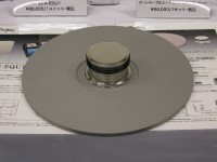 アムトランスのブースでは、ターンテーブルシートとスタビライザーが展示されていた。ターンテーブルシートはアルミ製で、往年のオーディオテクニカAT676や同677などとよく似た、ごく浅いすり鉢型のものである。これに盤を載せ、さらにスタビライザーを載せてやると、盤のソリが抑えられ、同時に密着性が高まって、再生音は大きく向上するものである。スタビライザーは真鍮製クロームメッキで、重量は1.3kgと大変に重い。大変魅力的な製品だが、プレーヤーによっては向かないものもあるので注意が必要だ。