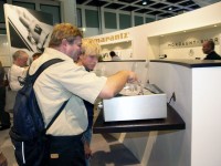 プリアンプ「SC-11S1」、パワーアンプ「SM-11S1」 SACD/CDプレーヤー「SA-11S2」はともに、フラグシップモデル「SC-7S2」「MA-9S2」の技術を盛り込んだ、待望のミドルクラスとしてドイツでも注目度が高まっている。会場では内部構造が確認できるように展示されており、じっくりと観察する来場者も多かった。
