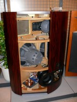 今回の目玉は、先日発表されたJBLの「S4600」(関連ニュース)。S4600は同社のS9800の流れを汲むスピーカーで「JBL色が極めて濃く表れている」(同ブース説明員)製品だ。14インチ径ウーファーを搭載したやや小さめのサイズと、1本483,000円(税込)という価格により、手の届きやすい製品となっているという。ブースでは試聴もできるほか、内部構造がよくわかる構造モデルも展示され、多くの人の耳目を集めていた。