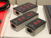 また同社は、電源タップの新製品3モデルも展示。ジェラルミン削りだしの筐体やオヤイデ電機特注のプラグなどを採用したほか、要所にクライオ処理を施し、内部配線の改良なども行っている。さらに、真鍮のスパイクは底部を平らにし、fo.Qを貼り付けた特別仕様となっている。2口の「RTP-2」、4口の「RTP-4」、6口の「RTP-6」をラインナップし、価格はそれぞれ9万円前後、15万円前後、19万円前後となる予定だ。