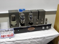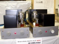 さらに同社は近年管球アンプのキット及び完成品も数多く手がけているのだが、新たに2A3シングルアンプキット「NewHG-2A3」と300Bシングルアンプキット「NewHG-300B」が出展されていた。Jamesトランスタイプ、タンゴトランスタイプ、さらにタムラトランスタイプと好みのトランスを使えるようラインナップを揃える予定だという。価格的にはタンゴタイプの方が5〜6000円ほど高くなるのではないかとのこと。そして昨年の同イベントで出展されていたモデルをバージョンアップさせた「HE-55M Limited」(2台1組¥1,000,000)も出展。新開発の実用新案申請中であるEK回路により中低域〜高域にかけて厚みを持たせたサウンドつくりを行い、高音質であるショットキーダイオードの採用など、全体的にブラッシュアップを計っているが価格は据え置かれている。本機は同社のフラッグシップでもあるが、バージョンアップしても同じ価格というのはとても良心的だ。