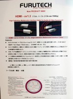 また、ブースに実品展示はされなかったが、4月に発売を予定しているHDMIケーブルの新製品の紹介も行われていた。本製品はラインナップは1mから20mを用意し、価格は29,400円/1m(税込)。ver.1.3bに対応しており、1080pまでの電送が可能。同社の新素材である「α-導体」を採用することにより、導電性を向上させ、高品位な映像再生の実現を可能にするという。