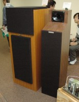 今回のイベントで初めて披露されたスピーカー新製品「LXM-2000」を出展。価格はペアで140万円を予定しているという。その隣には、英国のスピーカー、ローサのユニット「PM-7A」を採用した2ウェイのスピーカー「SLX-7000マークII」も並ぶ。本機はフロントーホーンと背面反射ホーンを搭載。価格はペアで273万円(税込)。