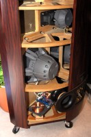 また、同社のフラグシップスピーカー“Project EVEREST"「DD66000」は、エボニーとメイプル、チェリーの3色を展示。さらにカットモデルも置かれ、内部構造を確認することが可能となっている。