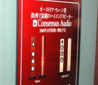 また、オーストリア「Consensus Audio」製スピーカーの取り扱いを12月から開始することも告知され、「SC-38u」などと共に並べられている。「Consensus Audio」はLumenWhiteなど欧州ハイエンドスピーカーの開発設計を手がけたStefanFekete氏が2003年に立ち上げた新鋭メーカーで、スピーカーボックス内の空気の流れを内部構造によってコントロールし、吸音材を使用することなく反射音を完全にダンプする「Air-flow-Technology」採用の製品を開発しているのだという。
