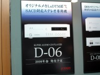 また、SACDプレーヤーでは新型機「D-06」の発売もアナウンスされていた。ポスターのみの告知で「LxDTM」を搭載していることしか明かされていないが、「D-08」の普及モデルに当たる製品で来春の発売が予定されているとのことだ。